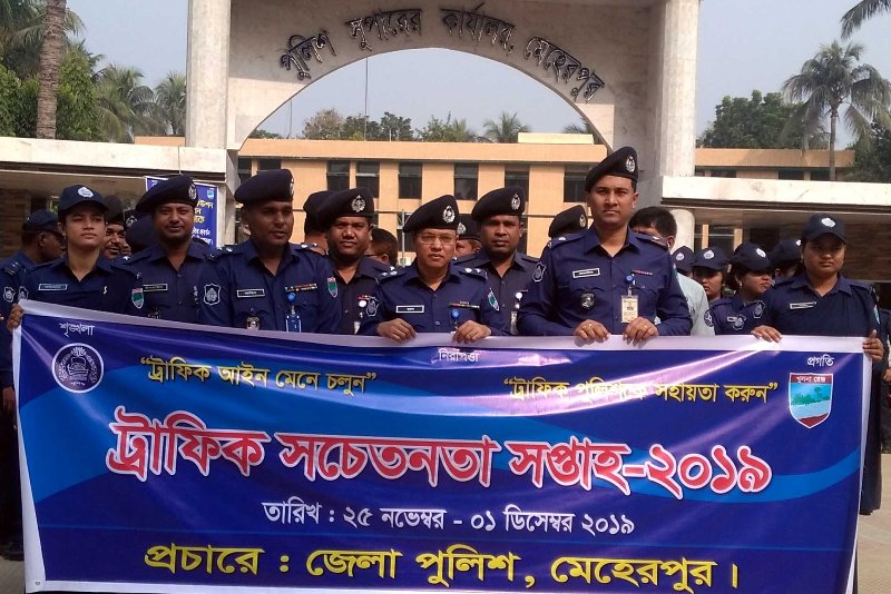 মেহেরপুর জেলা পুলিশের উদ্যোগে ট্রাফিক সচেতনতা সপ্তাহ উপলক্ষে বর্ণাঢ্য র্যালী ও আলোচনা সভা অনুষ্ঠিত হয়েছে।