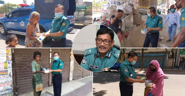 ঢাকা মেট্রোপলিটন পুলিশের কমিশনার শফিকুল ইসলামের ব্যক্তিগত উদ্দ্যেগে বুধবার এ খাবার বিতরণ করেন।