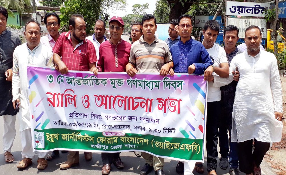 লক্ষ্মীপুরে পালিত হয়েছে বিশ্ব মুক্ত গণমাধ্যম দিবস। আজ শুক্রবার (৩ মে) বেলা ১১টায় র্যালি ও আলোচনা সভার মধ্য দিয়ে দিবসটি পালন করে সাংবাদিকদের সংগঠন ‘ইয়ুথ জার্নালিস্টস্ ফোরাম বাংলাদেশ’ এর লক্ষ্মীপুর জেলা শাখা। জেলায় কর্মরত সাংবাদিকসহ বিভিন্ন শ্রেণি পেশার মানুষ এতে অংশগ্রহণ করেন।