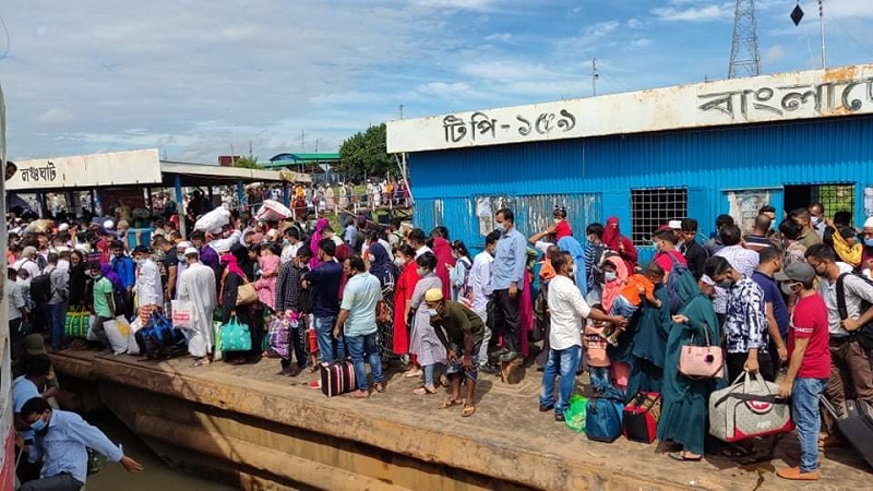 ঈদের খুশি স্বজনদের সঙ্গে ভাগাভাগি সীমিত করে আগামীকাল হতে ফের বিধিনিষেধ থাকায় কর্মস্থলে ফিরছে মানুষ। অন্যদিকে যারা ঈদের আগে বাড়ি ফিরতে পারেনাই ফের টানা ১৪ দিনের কঠোর বিধিনিষেধের ঘোষণায় অনেকে আবার গ্রামেও ফিরে যাচ্ছেন। তাই শিমুলিয়া ঘাটে আজ বৃহস্পতিবার (২২ জুলাই) ভোড় হতে উভয়মুখী যাত্রীর চাপ রয়েছে।