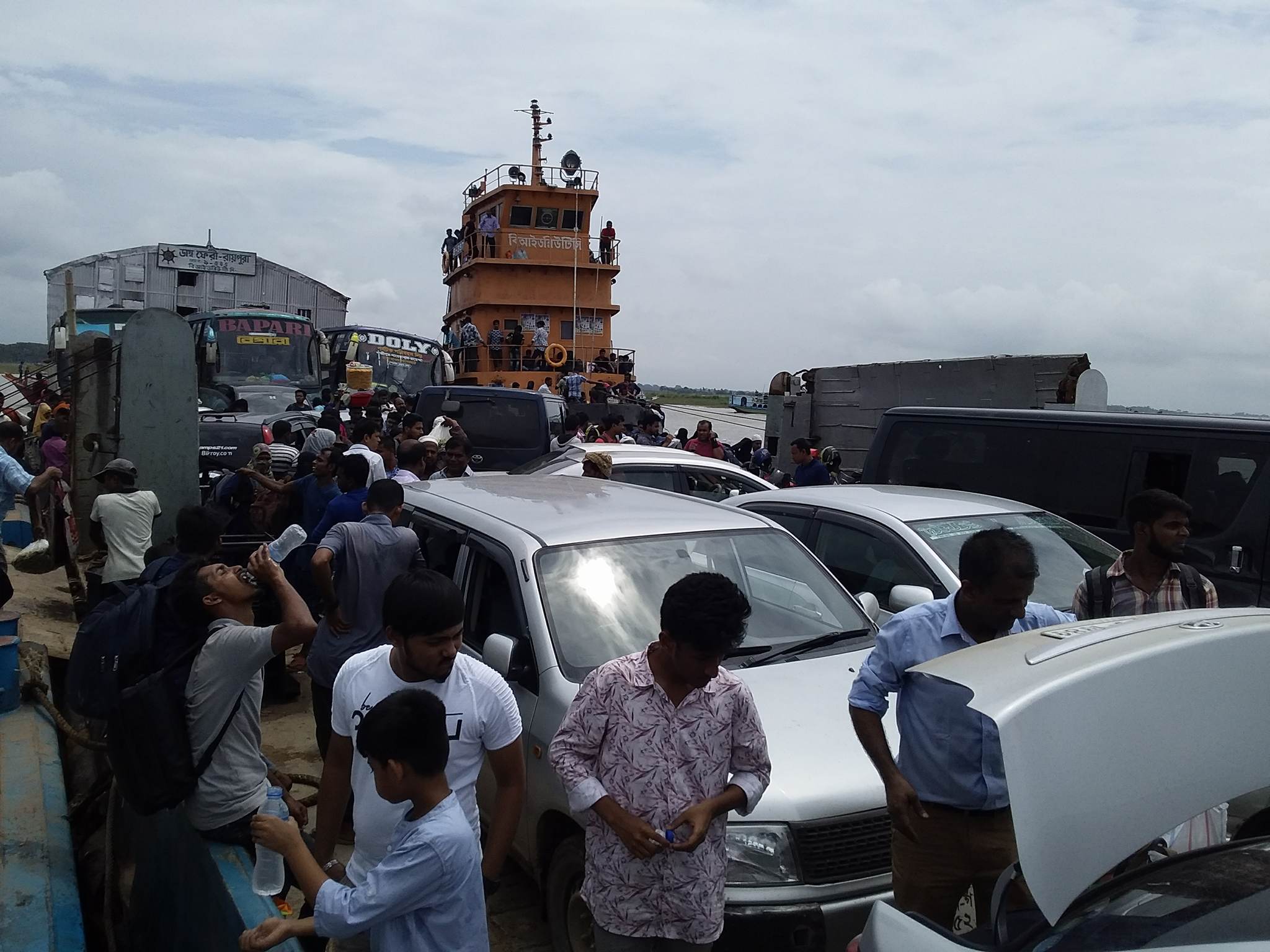 মাওয়া ট্রাফিক পুলিশ ফাঁড়ির ইন্সপেক্টর মো. হেলাল উদ্দিন জানান, শিমুলিয়া ঘাটের পার্কিং ইয়ার্ডে প্রাইভেটকার ও বাস পারের অপেক্ষায় আছে। ভোর সকাল থেকেই যাত্রীবাহী গাড়ির সংখ্যা বাড়তে শুরু করেছে। এছাড়া ট্রাকের একটি দীর্ঘ সাড়ি ঘাট এলাকায় অবস্থান করছে। তবে অগ্রাধিকার ভিত্তিতে যাত্রীবাহী গাড়িকে আগে ফেরিতে উঠতে দেওয়া হচ্ছে। ফেরি চলাচলে বিঘ্ন না ঘটলে গাড়ির চাপ কমে আসবে বলে জানান তিনি।