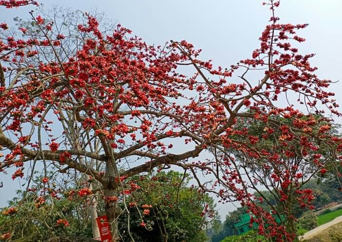 ব্রাহ্মণবাড়িয়ার আখাউড়া উপজেলার বিভিন্ন এলাকায় গাছে গাছে শোভা পাচ্ছে নয়নাভিরাম শিমুল ফুল। প্রকৃতিকে যেন সাজিয়েছে শিমুলে ফুলের শোভায় এক নতুন রূপে। বাতাসে দোল খাচ্ছে শিমুল ফুলের রক্তিম আভায়। গাছের ডালে ফুটে থাকা শিমুল ফুলে মানুষের মনকে যেন রাঙিয়ে তুলেছে।