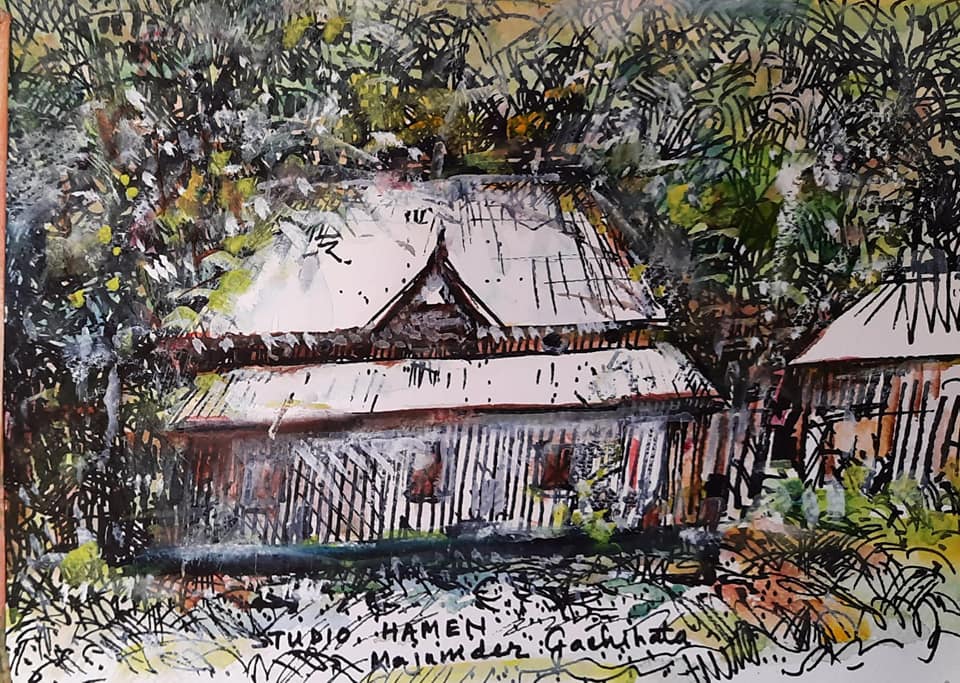 নীরদচন্দ্র চৌধুরীর ভাইয়ের ছেলে বিপ্লব চৌধুরী হামিদুজ্জামানের সহপাঠী ছিল। হামিদুজ্জামান প্রায় বিপ্লবের বাড়ি গিয়ে সাথে নিয়ে স্কুলে যেত। বনগ্রামে স্কুলের শিক্ষকবৃন্দ সংস্কৃতিমনা ছিলেন। হামিদুজ্জামানকে ছবি আঁকার প্রতি উৎসাহ দিতেন। অষ্টম শ্রেণিতে প্রথম হওয়ার গৌরব অর্জন করেন । তখন শিক্ষকদের নজরে পরে। ওই সময় স্কুলে ভারত থেকে বসুমতী মাসিক ম্যাগাজিন ও পূজা সংখ্যা প্রকাশিত হলেই আসত। হামিদুজ্জামান গচিহাটা গ্রামের প্রখ্যাত শিল্পী হেমেন্দ্র মজুমদার সম্বন্ধে জানতে পারেন। আঠারো-শ পঁচানব্বই সালে গচিহাটা গ্রামে জন্মগ্রহণ করেন। শৈশবে হেমেন্দ্র নাথ মজুমদার বনগ্রাম স্কুলের ছাত্র ছিলেন। তাঁর পিতার নাম গোলকনাথ মজুমদার। প্রখ্যাত ও ঐতিহাসিক কেদারনাথ মজুমদার তাঁর ভাই উচ্চশিক্ষিত ছিলেন। হেমেন্দ্র নাথ মজুমদার বনগ্রামে প্রাথমিক শিক্ষা গ্রহণের পর তিনি ময়মনসিংহ স্কুল শেষ করে কলকাতা পড়তে যান। মায়ের আগ্রহে কলকাতা সরকারি আর্ট কলেজে ভর্তি হন। তিনি যখন কলকাতা আর্ট কলেজের ছাত্র তখন তাঁকে পঞ্চম জর্জের আগমন উপলক্ষে কলেজের তোরণ সাজানোর আদেশ দেওয়া হয়। তিনি ঘৃণাভরে এ আদেশ প্রত্যাখ্যান করে কলেজ থেকে বের হয়ে গিয়েছিলেন। একবছর পড়ার পর জুবিলী আর্ট সেন্টার থেকে শিল্প শিক্ষা গ্রহণ করেন। তার চিত্রশিল্প ভারতবর্ষে যৌথ প্রদর্শনীতে শ্রেষ্ঠ পুরস্কার অর্জন করেন। তার খ্যাতি ভারতবর্ষে ছড়িয়ে পড়ে। পরবর্তী জীবনে তিনি একজন গুণী শিল্পী হিসেবে প্রতিষ্ঠা লাভ করেন। পরে তিনি কলকাতায় স্থায়ীভাবে বসবাস শুরু করেন।