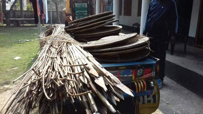 শৈলকুপা থানার অফিসার ইনচার্জ (ওসি) জাহাঙ্গীর আলম বিষয়টি নিশ্চিত করে জানান, উপজেলার বগুড়া ইউনিয়নের চেয়ারম্যান নজরুল ইসলামের বগুড়া গ্রামের বাড়ি থেকে এসব দেশীয় অস্ত্র উদ্ধার করা হয়েছে। এসময় বেতের ঢাল তৈরী অবস্থায় ২ কারিগরকে আটক করা হয়।