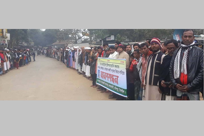 আজ বুধবার দুপুরে হামলা, ভাংচুর, লুটপাট ও মা-মেয়েকে শ্লীলতাহানির প্রতিবাদে ইন্দ্রারজানি এলাকায় স্থানীয়রা মানববন্ধনের আয়োজন করে। মানববন্ধনে আশপাশের গ্রামের প্রায় সহস্রাধিক লোকজন অংশ নেয়।