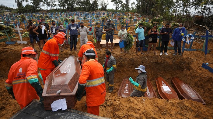 ব্রাজিলে ফের ভয়ংকর রূপ নিচ্ছে মহামারী করোনা ভাইরাস। আক্রান্তে ও মৃত্যুতে দ্বিতীয় অবস্থানে থাকা লাতিন আমেরিকার দেশটিতে একদিনে করোনায় মারা গেছেন সাড়ে ৩ হাজারের বেশি মানুষ, যা এখন পর্যন্ত দেশটির সর্বোচ্চ মৃত্যু।