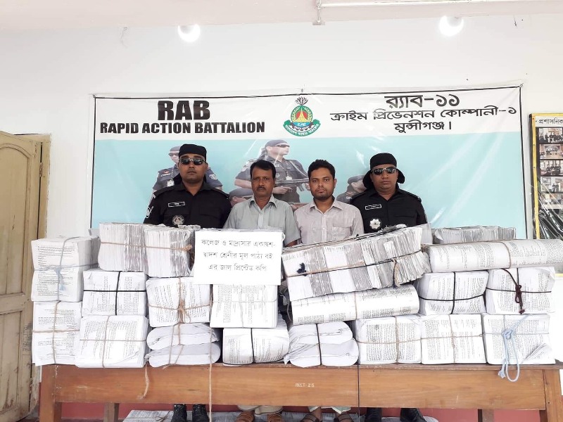 একাদশ ও দ্বাদশ শ্রেণির মূল পাঠ্য বইয়ের সাড়ে চার হাজার নকল কপিসহ দুইজনকে আটক করেছে র্যাব-১১।