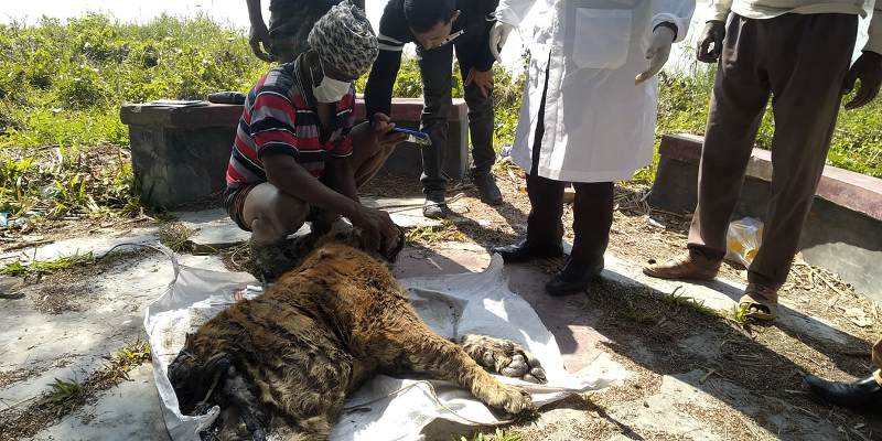 সোমবার (৩ ফেব্রুয়ারি) বিকালে বাগেরহাটের পূর্ব সুন্দরবন বিভাগের শরণখোলা রেঞ্জের কবরখালী খালের চর থেকে এই রয়েল বেঙ্গল টাইগারটির মরদেহ উদ্ধার করে বন বিভাগ। বাঘটির অর্ধেক অংশ কুমিরে খেয়েছে ও বাকী অংশ পচে গেছে। এ অবস্থায় উর্ধ্বতন কর্তৃপক্ষের নির্দেশে আজ মঙ্গবার দুপুরে উদ্ধার হওয়া মৃত বাঘটির ময়না তদন্ত করা হয়।