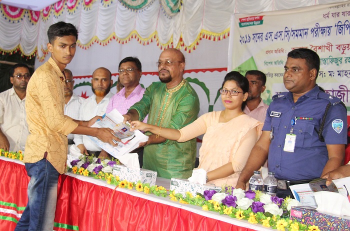 প্রভাষক জাহিদ হাসানের সঞ্চালনায় অনুষ্ঠানে অতিথিদের বক্তব্য শেষে পৌর এলাকায় এসএসসি ও সমমানের পরীক্ষায় ১১১ জন (ছাত্র ৫৮, ছাত্রী ৫৩) জিপিএ-৫ প্রাপ্ত শিক্ষার্থীদের মাঝে সংবর্ধনা ক্রেস্ট, সনদপত্র ও শুভেচ্ছা উপহার বিতরণ করেন অতিথিরা।