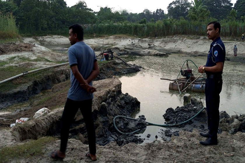 নির্বাহী ম্যাজিস্ট্রেট ও সহকারী কমিশনার (ভূমি) ইউছুফ হাসান বলেন, ইউএনও মহোদয়ের দেওয়া পূর্বের সতর্ক আদেশ অমান্য করেও যথাযথ প্রক্রিয়া না মেনে ইউপি সদস্য মো. নূরুজ্জামান ওই এলাকার একটি পতিত জমি থেকে ড্রেজার দিয়ে মাটি কেটে অন্যত্র বিক্রি করছিলেন। ভ্রাম্যমান আদালতের মাধ্যমে বালু মহাল ও মাটি ব্যবস্থাপনা আইনে তাকে পঞ্চাশ হাজার টাকা জরিমানা ও ড্রেজিংয়ে ব্যবহৃত দুইশ ফুট পাইপ ধ্বংস করে ড্রেজারটি সরিয়ে নেওয়ার নির্দেশ দেওয়া হয়েছে।