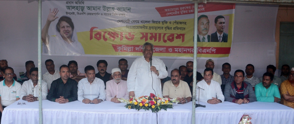 আজ শনিবার বিকেলে কুমিল্লা নগরীর ধর্মসাগর পাড়ে কুমিল্লা দক্ষিণ জেলার বিএনপির সাধারণ সম্পাদক আমিন-উর-রশিদ ইয়াছিনের কার্যালয়ে খালেদা জিয়ার মুক্তি ও পিয়াজসহ নিত্য প্রয়োজনীয় দ্রব্য মূল্যের উর্ধগতির প্রতিবাদে আয়োজিত বিক্ষোভ সমাবেশে এসব কথা বলেন।