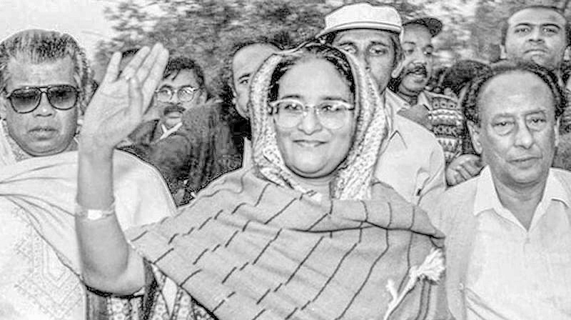 ’৮১-এর ১৭ মে ঝঞ্ঝাবিক্ষুব্ধ বৃষ্টিমুখর দিনে বিকাল সাড়ে ৪টায় তিনি স্বাধীন বাংলাদেশের মাটিতে পদার্পণ করেন। সারা দেশ থেকে লক্ষ লক্ষ মানুষ তাকে সংবর্ধনা জানাতে সেদিন বিমানবন্দরে সমবেত হয়েছিল। লাখো জনতা ‘জয় বাংলা, জয় বঙ্গবন্ধু’ স্লোগানে শেখ হাসিনাকে স্বাগত জানিয়ে আরো স্লোগান তুলেছিল-‘শেখ হাসিনার আগমন শুভেচ্ছা-স্বাগতম’; ‘শেখ হাসিনা তোমায় কথা দিলাম, মুজিব হত্যার বদলা নেব’; ‘ঝড়-বৃষ্টি আঁধার রাতে, আমরা আছি তোমার সাথে’; ‘বঙ্গবন্ধুর রক্ত বৃথা যেতে দেব না’; ‘আদর্শের মৃত্যু নেই, হত্যাকারীর রেহাই নেই’। বিমানবন্দর থেকে প্রিয় নেত্রীকে নিয়ে যখন মানিক মিয়া এভিনিউতে যাই রাস্তার দু’পাশে লক্ষ লক্ষ লোক। এমন দৃশ্য যা বর্ণনাতীত। সভামঞ্চে উঠে ক্রন্দনরত অবস্থায় সেদিন তিনি বলেছিলেন, ‘আমি সর্বহারা। আমার কেউ নেই। আপনাদের মাঝেই আমার হারানো পিতা-মাতা, আমার ভাই, আত্মীয়-স্বজন সবাইকে আমি খুঁজে পেতে চাই। আপনাদের কথা দিলাম এই দেশের গণতন্ত্র পুনরুদ্ধারের জন্য আমি জীবন উৎসর্গ করব।’ মানিক মিয়া এভিনিউর জনসমুদ্রে সর্বস্তরের জনতার উদ্দেশে বক্তৃতায় জাতির কাছে যে অঙ্গীকার তিনি ব্যক্ত করেছিলেন পরবর্তীসময়ে সেসব প্রতিশ্রুতি অক্ষরে অক্ষরে বাস্তবায়ন করে আজো তা অব্যাহত রেখেছেন।
