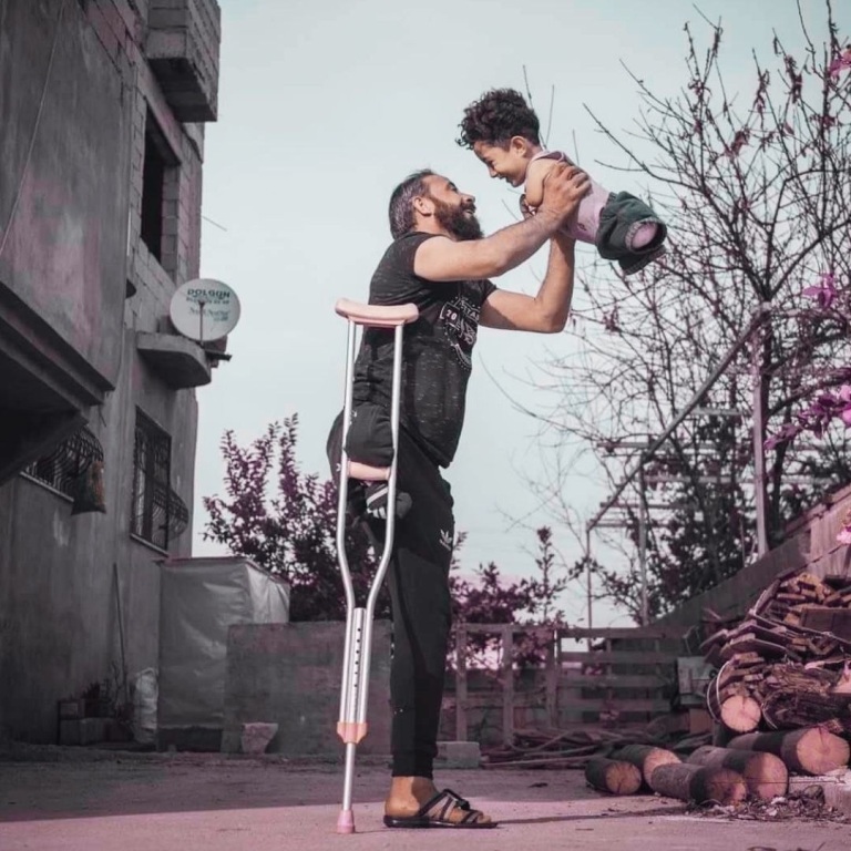বাবা যুদ্ধবিধ্বস্ত সিরিয়ার নাগরিক মুঞ্জির আল-নাজ্জাল। তিনি বোমা বিস্ফোরণে পা হারান। তারপর সীমান্ত পাড়ি দিয়ে আশ্রয় নিয়েছেন তুরস্ক সীমান্তের একটি শরণার্থী ক্যাম্পে। লড়াই করছেন নিজের জীবনের সঙ্গে। তবে নিজের পা হারানো নিয়ে মোটেও চিন্তিত নন মুঞ্জির। তার সব চিন্তা এখন পাঁচ বছরের ছেলে মুস্তাফার ভবিষ্যৎ নিয়ে। কারণ সিরিয়ায় যুদ্ধের সময় নির্গত স্নায়ু গ্যাসের কারণে জন্মগত রোগে হাত-পা ছাড়াই জন্মগ্রহণ করেছে মুস্তাফা। আলোকচিত্রী মেহমেত আসলানের ছবিতে দেখা গেছে, মুঞ্জির ক্রাচ ব্যবহার করে নিজের ভারসাম্য বজায় রেখে ছেলেকে দুই হাত দিয়ে শূন্যে ধরে রেখেছেন। এ সময় বাবা-ছেলে দুই জনেই হাসছেন। সিরিয়ার ইদলিবের একটি বাজার দিয়ে যাওয়ার সময় বোমা বিস্ফোরণে ডান পা হারান মুঞ্জির। আলোকচিত্রী মেহমেত ওয়াশিংটন পোস্টকে বলেন, এই ছবির মাধ্যমে বিশ্বের মনোযোগ আকর্ষণের চেষ্টা করেছি। আমি তাদের জীবনযুদ্ধকে সবার সামনে তুলে ধরেছি। আশাকরি সবাই শরণার্থীদের প্রকৃত অবস্থা বুঝতে পারবে। সবাই শিশুটিকে সাহায্য করতে এগিয়ে আসবে।