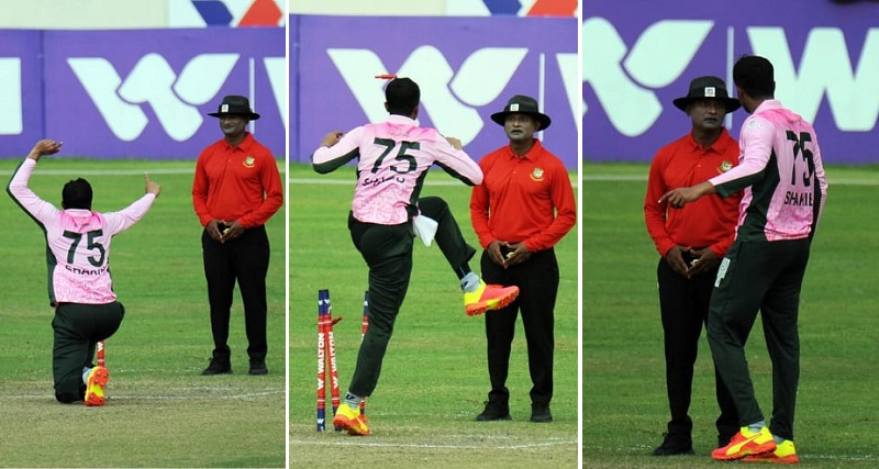 ওভারের শেষ বলে মুশফিকের বিপক্ষে লেগ বিফোরের আবেদন করেন মোহামেডান অধিনায়ক। সেটি নাকচ করে দেন আম্পায়ার ইমরান পারভেজ। এতেই ক্ষিপ্ত হন সাকিব। লাথি দিয়ে ভাঙেন স্টাম্প। এতে উত্তেজনা ছড়াল ম্যাচে। ভিডিও ফুটেজে অবশ্য স্পষ্ট। আউট ছিলেন মুশফিক।