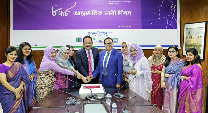 আন্তর্জাতিক নারী দিবস-২০২১ উদ্যাপন করেছে মার্কেন্টাইল ব্যাংক লিমিটেড। এ উপলক্ষে সোমবার প্রধান কার্যালয়ে আয়োজিত অনুষ্ঠানে নারী কর্মকর্তাদের নিয়ে কেক কাটেন ব্যাংকের ব্যবস্থাপনা পরিচালক ও প্রধান নির্বাহী মোঃ কামরুল ইসলাম চৌধুরী।