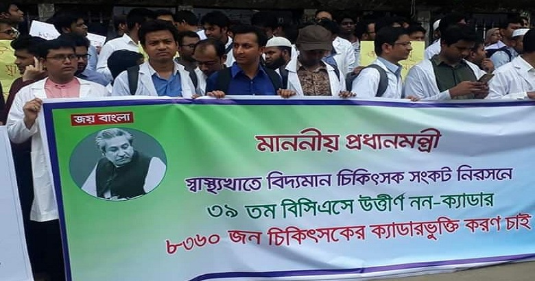 অথচ কর্ম কমিশন ফলাফল ঘোষণায় উল্লেখ করেছে, নন-ক্যাডারভুক্ত সকল চিকিৎসক লিখিত ও মৌখিক পরীক্ষায় উত্তীর্ণ হয়েছে। পদ শূন্য না থাকায় তাদের নিয়োগ না দিয়ে নন-ক্যাডার আওতাভুক্ত করে অনিশ্চয়তার দিকে ঠেলে দেওয়া হয়েছে। স্বাস্থ্যমন্ত্রী থেকে অধিদপ্তরের মহাপরিচালক পর্যন্ত সবাই জানে চিকিৎসকদের ব্যাপক পদ শূন্য আছে। পরস্পরবিরোধী এ অবস্থানে থেকে নবীন চিকিৎসকদের নিয়োগ নিয়ে বিভ্রান্তি সৃষ্টির কারণ কী?