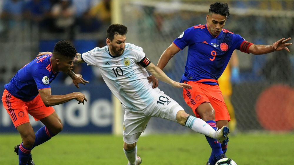 প্রথমার্ধে বল নিয়ন্ত্রণে এগিয়ে ছিল আর্জেন্টিনা, আক্রমণে কলম্বিয়া। ষোড়শ মিনিটে নিজেদের প্রথম ভালো সুযোগটি পায় তারা। ডি-বক্স থেকে রজের মার্তিনেসের শট এক ডিফেন্ডারের পায়ে লেগে বাইরে চলে গেলে এ যাত্রায় বেঁচে যায় আর্জেন্টিনা।