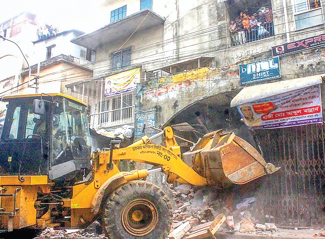 অভিযানের প্রথম দিনই মার্কেটের ব্যবসায়ীদের সঙ্গে পুলিশের ব্যাপক সংঘর্ষের ঘটনা ঘটে। কিন্তু পিছু হটেনি ডিএসসিসি। টানা এক মাস অভিযান চালিয়ে ৯১১টি অবৈধ দোকান গুঁড়িয়ে দেওয়া হয়। এর মধ্যে ১৭ ডিসেম্বর গুলিস্তানে সুন্দরবন স্কয়ার সুপার মার্কেটে নকশাবহির্ভূত দোকান উচ্ছেদে অভিযান চালায় ডিএসসিসি। পরে এই মার্কেটের লিফট, টয়লেট, বারান্দাসহ বিভিন্ন জায়গা থেকে ৭৫০টি অবৈধ দোকান উচ্ছেদ করা হয়। এ ছাড়া মার্কেটটি চারতলা পর্যন্ত বৈধ হলেও অনুমতি ছাড়াই পাঁচতলা অবকাঠামো নির্মাণ করে ব্যবসা পরিচালনা করছিল একটি চক্র। জাকের সুপার মার্কেট, নগর প্লাজা ও সিটি প্লাজা নামে পৃথক তিনটি ভবন নিয়ে ফুলবাড়িয়া সুপার মার্কেট-২। গত ২৭ ফেব্রুয়ারি সরেজমিন দেখা যায়, এই তিনটি প্লাজার প্রবেশপথ ছাড়া চারপাশে ইট-সুরকির স্তূপ হয়ে আছে। ফলে ফুটপাত দিয়ে পথচারীদের চলাচল সম্ভব হচ্ছে না। তারা রাস্তার একপাশ ধরে হাঁটাচলা করছেন। পাইকারি মালামাল কিনে গাড়িতে ওঠা-নামা করতে ব্যবসায়ীরাও সমস্যায় পড়ছেন। এ ছাড়া এই তিনটি ভবনের পার্কিং ফাঁকা দেখা গেছে। তবে ভেতরে ঘুটঘুটে অন্ধকার। দুর্গন্ধে ভেতরে ঢোকা সম্ভব হয়নি। সুন্দরবন স্কয়ার সুপার মার্কেটে একই চিত্র দেখা গেছে। নগর প্লাজা থেকে পাইকারি মালামাল (জুতা) কিনে ওই মার্কেটের সামনে গাড়ির অপেক্ষায় দাঁড়িয়ে ছিলেন মানিকগঞ্জের ব্যবসায়ী তরিকুল ইসলাম। তিনি বলেন, ‘ডিএসসিসির উচ্ছেদ অভিযানের পর এই এলাকার মার্কেটগুলোর পরিবেশ সুন্দর হয়েছে। তবে চারপাশ থেকে ইট-সুরকি অপসারণ না করায় আবার তা নোংরা হয়ে যাচ্ছে। মার্কেটে মালামাল কিনে বাইরে রাখার জায়গা পাওয়া যাচ্ছে না।’ জাকের প্লাজার ব্যবসায়ী কাদের তালুকদার। আলাপকালে তিনি বলেন, ‘প্রায় তিন মাস আগে ওই উচ্ছেদ অভিযান চালিয়েছিল ডিএসসিসি। কিন্তু এখন পর্যন্ত ইট সুরকিগুলো অপসারণ করেনি সংস্থাটি। ব্যবসায়ীদের পক্ষ থেকে বিষয়টি সিটি করপোরেশনের সংশ্লিষ্টদের কয়েকবার জানানো হয়েছে। কিন্তু তারা কোনো পদক্ষেপ নিচ্ছে না।’ ডিএসসিসির প্রধান সম্পত্তি কর্মকর্তা রাসেল সাবরিন বলেন, ‘ওই মার্কেটগুলো থেকে দুই হাজারের বেশি অবৈধ স্থাপনা গুঁড়িয়ে দেওয়া হয়েছে। উচ্ছেদের পর পরই মার্কেটের সীমানা থেকে ভাঙা ইট-পাথর সরিয়ে দেওয়া হয়েছে। তার পরও যদি কোথাও তা ছড়িয়ে থাকে এগুলো অপসারণ বা পরিষ্কার করা হবে।’