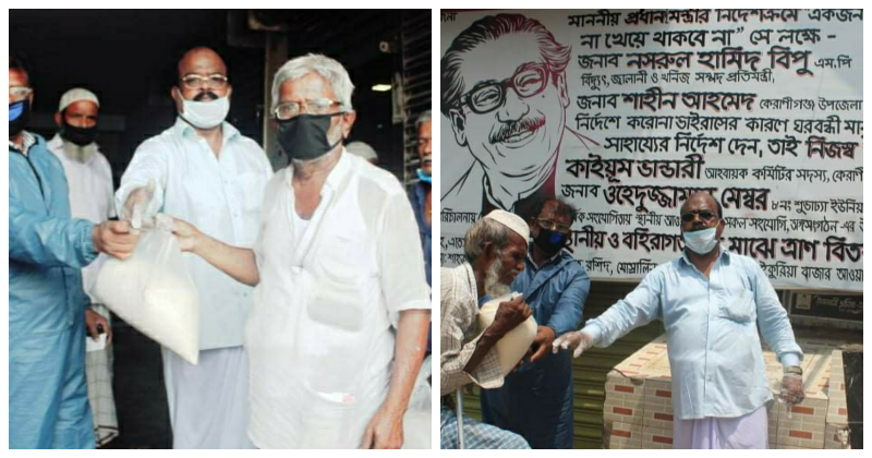আওয়ামী লীগ নেতা কাইয়ূম ভান্ডাড়ী বলেন, বিদ্যুৎ প্রতিমন্ত্রী, উপজেলা চেয়ারম্যানের নির্দেশে আমাদের এলাকায় দুস্থ, কর্মহীন, ভ্যান চালক,রিস্কা চালক,গার্মেন্টস, বিভিন্ন ধরনের কর্মজীবি স্থায়ী, অস্থায়ী বসবাসরত মানুষের ভোটার আইডি সংগ্রহের মাধ্যমে করোনার সংক্রমণের নিয়মনীতির দুরত্ব বজায় রেখে সুশৃঙ্খল ভাবে ১৬০০ জনের তালিকা তৈরি করে নিজেদের সহযোগিতায় খাদ্যসামগ্রী প্রদান করেছি। এর পূর্বেও প্রায় ১৫০০ জনের মাঝে খাদ্য সামগ্রী বিতরণ করেছি।