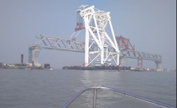 শনিবার স্প্যান বহনকারী ক্রেনের জাহাজটি খুঁটি থেকে মাত্র ২০০ ফুট দূরে অবস্থান করে।
