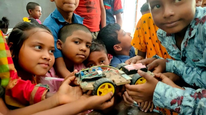 দক্ষিণাঞ্চলের (পিরোজপুর) বলেশ্বর নদী তীরবর্তী জেলে জনগোষ্ঠীর শিশুদের জীবনমান উন্নয়ন, তাদের মৌলিক অধিকার নিশ্চিত, নিজস্ব সংস্কৃতি বিকাশ ও তথ্যপ্রযুক্তিতে দক্ষ করার পাশাপাশি তাদের জন্য বিভিন্ন সুযোগ সৃষ্টি করতে কাজ করে যাচ্ছে হাতে খড়ি ফাউন্ডেশন। দারিদ্র্য এ জনগোষ্ঠীর শিশুরা শিক্ষাসহ বিভিন্ন সুযোগ-সুবিধা থেকে বঞ্চিত যার ফলে সামাজিক ভাবে তারা বৈষম্যের শিকার হচ্ছে। সমাজের অন্যদের সাথে বৈষম্য দূরীকরণে তাদের জন্য কাজ করছে হাতে খড়ি ফাউন্ডেশন। এরই ধারাবাহিকতায় হাতে খড়ি ফাউন্ডেশনের ‘ডিজিটাল ভিলেজ’ মাধ্যমে বলেশ্বর নদী তীরবর্তী শিশু শিক্ষর্থীদের জন্য আয়োজন করা করে হয়েছে বিজ্ঞান ও প্রযুক্তি মেলা। মঠবাড়িয়ার জেলেপল্লীর সুবিধাবঞ্চিত শিশুদের নিয়ে বিজ্ঞানমেলার এই আয়োজন করা হয়। এই মেলায় অংশ নিয়েছে তরুণ উদ্ভাবকরা। গত সোমবার সকাল ১০টায় শুরু হওয়া মেলাটি চলে দুপুর ১টা পর্যন্ত। আয়োজকেরা জানান, হাতে খড়ি ফাউন্ডেশনের বিজ্ঞান শিক্ষা উদ্যোগ ‘ডিজিটাল ভিলেজ’-এর অধীনে বর্তমানে বেশকয়েকটি বিদ্যালয়ের প্রাথমিক স্তরের সুবিধাবঞ্চিত শিক্ষার্থীদের বিজ্ঞান সম্পর্কিত বিভিন্ন বিষয় শেখানো হচ্ছে। প্রতিবছর এই বিজ্ঞানমেলার মাধ্যমে শিক্ষার্থীদের সুপ্ত প্রতিভা বিকাশের সুযোগ এবং তাদের উৎসাহ প্রদান করা হয়। বিভিন্ন প্রযুক্তির অভিনব গঠন বিভিন্ন প্রজেক্টে নিজেদের সৃষ্টিশীলতার প্রকাশ, প্রযুক্তির এমন বিবিধ ব্যবহার দেখতে খেজুরবাড়িয়া সরকারি প্রাথমিক বিদ্যালয়ের মেলা প্রাঙ্গনজুড়ে ছিল আগ্রহী শিক্ষার্থী ও অভিভাবকদের ভিড়। আয়োজিত এ উৎসবে শিক্ষার্থীদের বিজ্ঞান প্রজেক্ট, কুইজ প্রতিযোগিতা, প্রশ্নোত্তর পর্ব, বিজ্ঞানবিষয়ক আলোচনা, বিজ্ঞানের মজার বইয়ের সঙ্গে পরিচিতি করে দেওয়া হয়। হাতে খড়ি ফাউন্ডেশনের প্রতিষ্ঠাতা পরিচালক রুবেল মিয়া মনে করেন, এ রকম বিজ্ঞান উৎসব শিক্ষার্থীদের আত্মবিশ্বাস অনেকগুণ বাড়িয়ে দেবে। এসময় উপস্থিত ছিল সংগঠনের প্রতিষ্ঠাতা ও সভাপতি সুমন মিস্ত্রী সজিব, কেন্দ্রীয় কমিটির সাধারণ সম্পাদক সৌরভ হাওলাদার নীল, উপজেলা শাখার সভাপতি পলাশ বৈরাগী, সুস্মিতা অধিকারী, দ্বীপ দেবনাথ, সৌরভ বেপারী, দুর্জয় তালুকদার প্রমুখ।