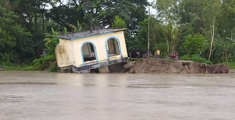 মুন্সীগঞ্জের টঙ্গীবাড়ী উপজেলার পদ্মা নদী রুদ্রমূর্তি ধারণ করেছে। বর্ষার শুরুতেই উজান হতে নেমে আসা ঢলের পানিতে তীব্র স্রোত বইছে পদ্মা। যার ফলে উপজেলার হাসাইল, দিঘিরপাড়, হাইয়ার পাড়, পাঁচগাও, কামারখাড়া গ্রামে ভাঙ্গন দেখা দিয়েছে। ভাঙ্গনের ফলে হুমকির মুখে পড়েছে পাচগাও গ্রামের শত কোটি টাকা ব্যয়ে নির্মিত পদ্মা নদী তীর সংরক্ষণ বাধ এবং মাত্র চার বছর আগে নির্মিত হাইয়ারপাড় গ্রামের হাইয়ারপাড় আল-মদিনা জামে মসজিদ। মসজিদের কিছু অংশ নদীতে বিলীন হয়ে নদীর দিকে একেবারে হেলে পরেছে। যে কোন মুহুর্তে পুরো মসজিদটি নদীতে বিলীন হয়ে যাবে।