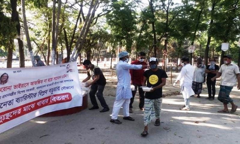 ঢাকা বিশ্ববিদ্যালয় ক্যাম্পাসে রিকশাচালক, শ্রমিক, গরিব ও দুস্থ জনগোষ্ঠীর মাঝে খাবার বিতরণের উদ্যােগ নেয়া হয়েছে। প্রধানমন্ত্রীর বিশেষ সহকারী ও আওয়ামী লীগের দপ্তর সম্পাদক বিপ্লব বড়ুয়ার অর্থ সহায়তায় এ খাবার বিতরণের উদ্যােগ নিয়েছেন ঢাকা দক্ষিণ সিটি করপোরেশানের ২১ ওয়ার্ডের কাউন্সিলর আসাদুজ্জামান আসাদ।