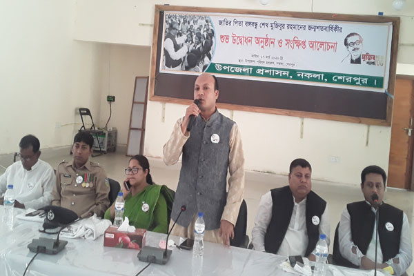 শেরপুরের নকলায় বঙ্গবন্ধু শেখ মুজিবুর রহমানের জন্মশতবার্ষিকী উপলক্ষ্যে মুজিববর্ষ উদ্বোধন ও আলোচনা সভা অনুষ্ঠিত হয়েছে।
