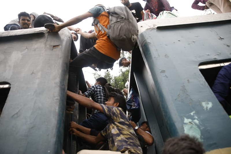 গতকাল সকাল থেকেই মোটামুটি নির্ধারিত সময়ে গন্তব্যের উদ্দেশে ছেড়ে যায় বিভিন্ন আন্তঃনগর ট্রেন। অনেক কাঠখড় পুড়িয়ে পাওয়া টিকিটে যাত্রা করতে পেরে খুশি যাত্রীরা। ট্রেনের ভেতরে বা ছাদে উঠতে পারা এক প্রাণান্তকর চেষ্টা চলে ঈদে ঘরমুখো যাত্রীদের। সর্বোচ্চ ঝুঁকি জেনেও তা ম্লান হয়েছে ঈদ উৎসবের কাছে। শেকড়ের টান, নাড়ির টানে ফিকে হয়েছে কষ্টের যাত্রা। প্রায় সব ট্রেনে ভিড় কম থাকলেও উত্তরাঞ্চলের নীলসাগর এক্সপ্রেসের অনেক যাত্রী উঠে বসেন ট্রেনের ছাদে। নিরাপত্তা বাহিনীর সদস্যরা কয়েকজনকে নামিয়ে দিতে সক্ষম হলেও বেশিরভাগই রওনা দিয়েছেন ঝুঁকি নিয়ে। আবার অনেকে টাকা দিয়ে প্রতারিত হওয়ার অভিযোগও করেছেন।