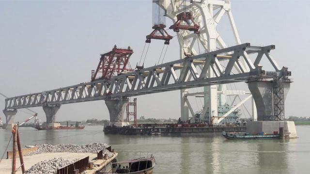 রোববার সকাল ৬টা থেকেই শুরু হয় স্প্যান বসানোর আনুষাঙ্গিক কাজগুলো। সকাল ৯টার দিকে খুঁটির ওপর স্প্যান বসানোর মাধ্যমে দৃশ্যমান হয় প্রায় অর্ধ কিলোমিটারের সেতু। এর আগে শনিবার বিকেলে ১৫০ মিটার দৈর্ঘ্য ও তিন হাজার ১৪০ টন ওজনের স্প্যান বহনকারী তিন হাজার ৬০০ টন ধারণ ক্ষমতার ভাসমান ‘তিয়ান ই’ ক্রেনটি ৩৯ ও ৪০ নম্বর খুঁটির এলাকায় পৌঁছায়।