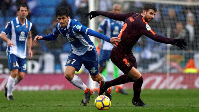 দ্বিতীয়ার্ধে ৬৬ মিনিটে জেরার্ড মেরোনোর গোলে স্বাগতিক এস্পানেয়ল এগিয়ে গেলে আর্নেস্টো ভালভার্দের দল মৌসুমের প্রথম পরাজয়ের শঙ্কায় পড়েছিল। কিন্তু সেন্টার-ব্যাক পিকে ৮২ মিনিটে লিয়নের মেসির কর্ণার থেকে কোনরকমে কাতালান জায়ান্টদের রক্ষা করেন। দিনের অপর ম্যাচে ওয়ান্ড মেট্রোপালিটানোতে তৃতীয় স্থানে ভ্যালেন্সিয়াকে ১-০ গোলে পরাজিত করে এ্যাথলেটিকো টেবিলের শীর্ষে থাকা বার্সেলোনার সাথে পয়েন্টের ব্যবধান ৯’এ নামিয়ে এনেছে। শনিবার লেভান্তের সাথে ২-২ গোলে ড্র করে চির প্রতিদ্বন্দ্বী বার্সার থেকে ১৯ পয়েন্ট পিছিয়ে চতুর্থ স্থানে রয়েছে বর্তমান চ্যাম্পিয়ন রিয়াল মাদ্রিদ।