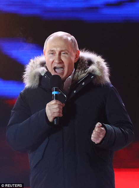 বিবিসি জানিয়েছে, নির্বাচনের প্রাথমিক ফলাফল ঘোষিত হওয়ার পর রাজধানী মস্কোয় এক বিজয় কনসার্টে ভাষণ দেন পুতিন। ভাষণে তিনি বলেন, “গত কয়েক বছরের অর্জনকে স্বীকৃতি দিয়েছেন ভোটাররা।” এরপর সাংবাদিকদের সঙ্গে কথা বলার সময় ছয় বছর পর আরেকটি প্রেসিডেন্ট নির্বাচনে তিনি লড়বেন কিনা এমন প্রশ্নের সহাস্য উত্তরে তিনি বলেন, ‘আপনি যা বলছেন তা কিছুটা কৌতুককর। আপনি কি মনে করেন ১০০ বছর না হওয়া পর্যন্ত আমি এখানে থাকবো? না’।