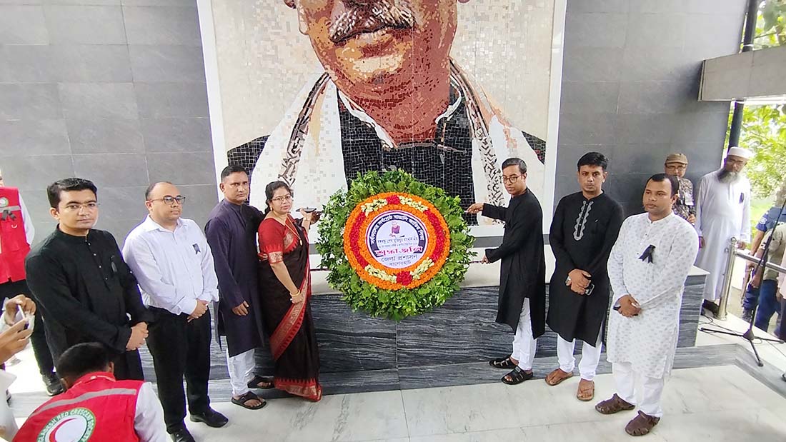 বাগেরহাটে নানা কর্মসুচির মধ্যদিয়ে জাতীয় শোক দিবস পালিত হয়েছে। সোমবার (১৫ আগস্ট) সকাল ৮ টায় বাগেরহাট জেলা আওয়ামী লীগ ও সহযোগী সংগঠনের উদ্যোগে রেলরোড দলীয় কার্যালয়ের সামনে জাতীয় ও দলীয় পতাকা অর্ধনমিতকরণ ও বঙ্গবন্ধু শেখ মুজিবুর রহমানের প্রতিকিৃতিতে পুষ্পমাল্য অর্পন করা হয়।