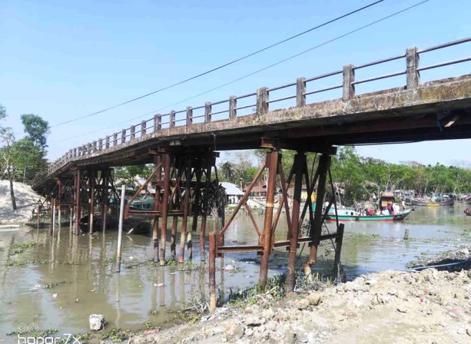 বাগেরহাটের শরণখোলা উপজেলার রায়েন্দা খালের উপর নির্মিত সেতুটি হেলে পড়েছে। উপজেলা প্রশাসন জানতে পেরে ঝুঁকিপূর্ণ ব্রিজ দিয়ে চলাচল বন্ধ করে দিয়েছে।