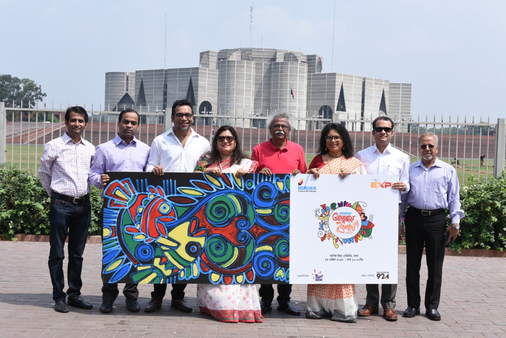 বাংলা নববর্ষ উপলক্ষে বার্জার পেইন্টসের পৃষ্ঠপোষকতায় ‘আল্পনায় বৈশাখ ১৪২৫’ শীর্ষক আল্পনা উৎসবের মোড়ক উম্মোচন হয়েছে ঢাকার মানিক মিয়া অ্যাভিনিউয়ে। বার্জার পেইন্টস বাংলাদেশ লিমিটেডের পক্ষে ব্যবস্থাপনা পরিচালক রূপালী চৌধুরী, জিএম মার্কেটিং একেএম সাদেক নেওয়াজ, ক্যাটাগরি ম্যানেজার-মার্কেটিং নোমান আশরাফী রহমান, আয়োজক এশিয়াটিকের পক্ষ থেকে সারা যাকের; ভাইস চেয়ারপারসন, এশিয়াটিক থ্রি সিক্সটি; ইরেশ যাকের, এমডি, এশিয়াটিক ইএক্সপি; ফারুক আহমেদ, জিএম, এশিয়াটিক ইএক্সপি; মোহাম্মদ সাঈম, হেড অব বিজনেস, এশিয়াটিক ইএক্সপি ও প্রখ্যাত চিত্রকর মো. মনিরুজ্জামান অনুষ্ঠানে উপস্থিত ছিলেন।