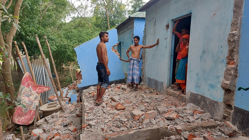অপরিকল্পিত নিম্নমানের সামগ্রী দিয়ে মুজিববর্ষের ঘর নির্মাণ করায় বৃষ্টিতে ভেঙে পড়েছে উপজেলার দুটি গৃহহীন পরিবারের ঘর। ঘটনাটি ঘটেছে উপজেলার সদর ইউনিয়নের পচাবাহলা গ্রামে। এনিয়ে আতঙ্ক রয়েছে ওই দুটি পরিবার। তবে উপজেলা প্রশাসন বলছে, নতুন মাটির ওপর এ ঘরগুলোর পাশে খাল থাকায় বৃষ্টির কারণেই ঘরের মাটি সরে গিয়ে ভেঙে গেছে। গত সোমবার থেকে ওই দুটি ঘরের পূর্ণ মেরামতের কাজ শুরু হয়েছে।
