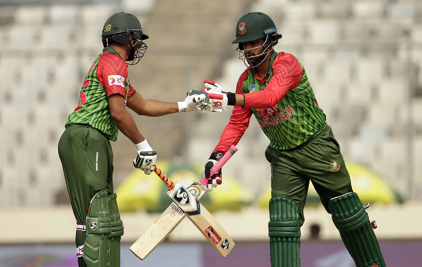 তামিম সর্বোচ্চ ৭৬ ও সাকিব ৫১ রান করে আউট হয়েছেন। এছাড়া মুশফিকুর রহিম করেছেন ১৮ রান।