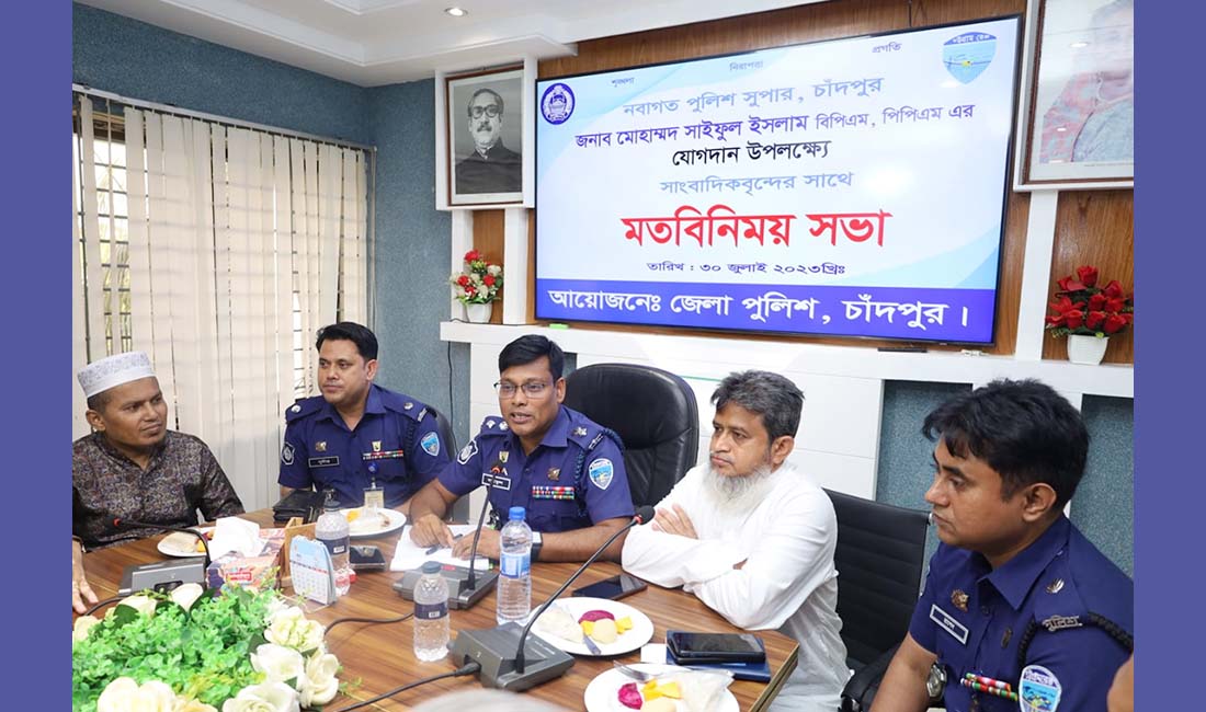 তিনি বলেন, আপনাদের সহযোগিতা ও কাজ করেছেন বলে চাঁদপুর অনেকটা নিরাপদ। আমি আরো নিরাপদ করতে চাই। বাংলাদেশ পুলিশ মূলনীতি সামনে রেখেই কাজ করবো। সেগুলো আক্ষরিক অর্থে রাখতে চাই না, তা বাস্তবায়ন করবো। সামাজিক শৃঙ্খলা অক্ষুন্ন রাখা, নিরাপত্তা নিশ্চিত করা এবং সামাজিক, অর্থনীতি ও সাংস্কৃতিক প্রগতিকে সামনে রেখে কাজ করবো। গুজব সৃষ্টিকারীদের দমনে কাজ করা হবে। প্রতিটি বিষয়ে সাংবাদিকদের কাছ থেকে মতামত নেয়া হবে।