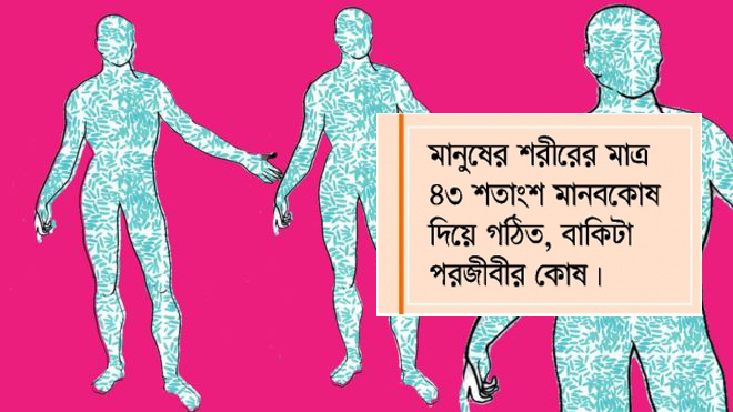তবে মানবদেহে মানবকোষ ও মাইক্রোবায়োমের অনুপাত নিয়ে করা সাম্প্রতিক এক গবেষণায় দেখা গেছে, একজন পরিণত মানুষের শরীরের মাত্র ৪৩ শতাংশ মানবকোষ দিয়ে গঠিত। বাকিটা ব্যাকটেরিয়া, আর্কিয়া, এবং মেথানোজেন্সের মতো পরজীবীর কোষ- শরীর। অর্থাৎ মানুষের শরীরের অর্ধেকেরও বেশি মানুষের নয়!
