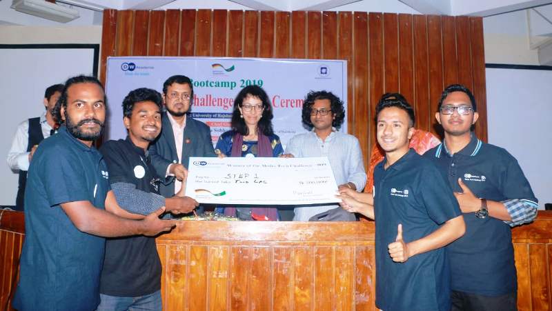 রাজশাহী বিশ্ববিদ্যালয়ে (রাবি) মিডিয়া টেক চ্যালেঞ্জ বুটক্যাম্প প্রতিযোগিতায় চ্যাম্পিয়ন হয়েছে টিম স্টেপ ওয়ান। সামাজিক মাধ্যমগুলোতে প্রকাশিত সংবাদের সত্যতা নিশ্চিত হওয়ার বিষয়ে অ্যাপভিত্তিক ধারণার যথার্থতা বিচারে প্রথম স্থান অর্জন করে দলটি। রোববার সন্ধ্যায় বিশ্ববিদ্যালয়ের ডিনস কমপ্লেক্সে সমাপনী অনুষ্ঠানে তাদেরকে পুরস্কার হিসেবে দুই লাখ টাকার চেক দেওয়া হয়।