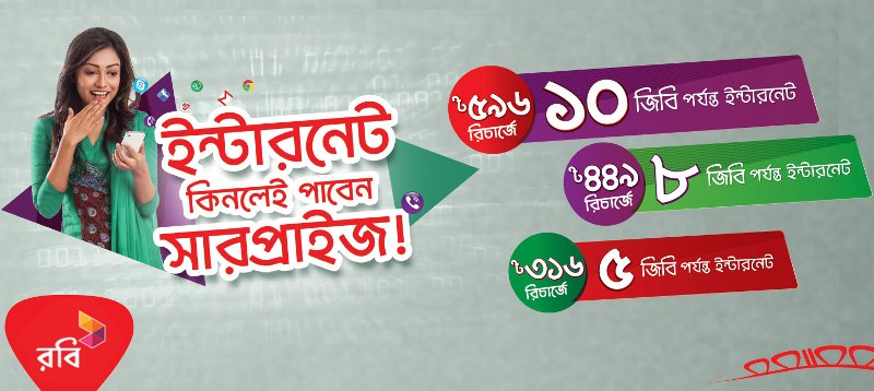 সারপ্রাইজ ডাটা গ্রাহকরা সোশ্যাল, স্ট্রিমিং অথবা যেকোনো ইন্টারনেটভিত্তিক কাজে ব্যবহার করতে পারবেন। স্ক্র্যাচ কার্ড, মাই রবি অ্যাপ, ওয়েবসাইট, ইউএসএসডি কোড অথবা দেশজুড়ে যেকোনো রিটেইলারের কাছ থেকে রিচার্জ করে রেগুলার ডাটা প্যাক কিনতে পারবেন গ্রাহকরা।