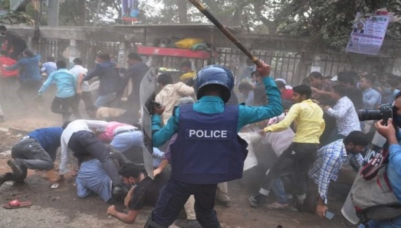 এ সময় ছাত্রদলের কর্মীরা পুলিশকে লক্ষ্য করে ইটপাটকেল ছুড়তে থাকে। বিপরীতে পুলিশরা ছাত্রদলকে ছত্রভঙ্গ করতে টিয়ারশেল নিক্ষেপ করতে থাকে। এক পর্যায়ে জাতীয় প্রেসক্লাবের বাইরে থেকে ভেতরেও টিয়ারশেল নিক্ষেপ করতে থাকে। সংঘর্ষে চলাকালে বেশ কয়েকজনকে আহত হতে দেখা যায়। ছাত্রদলের কর্মসূচিতে অংশ নেয়া বিএনপি নেতাকর্মীরা প্রেসক্লাবে ঢুকে পড়ে আর প্রেসক্লাবের গেট বন্ধ করে দেয়া হয়।