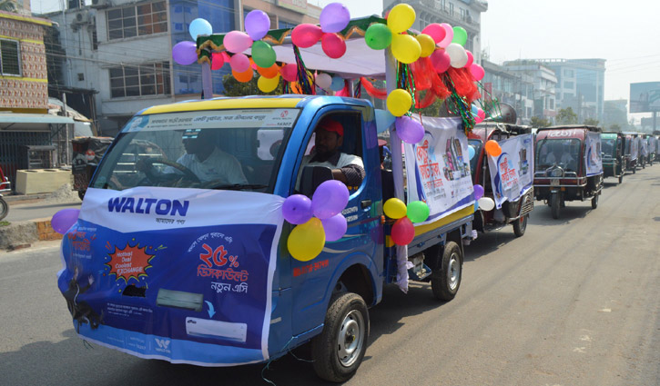 ওয়ালটন ডিজিটাল ক্যাম্পেইন সিজন-৪ এর কোটি কোটি টাকার নিশ্চিত ক্যাশ ভাউচার এবং এসি এক্সচেঞ্জ অফার ইস্যুতে রাজশাহীতে বর্ণাঢ্য র্যালি অনুষ্ঠিত হয়েছে।