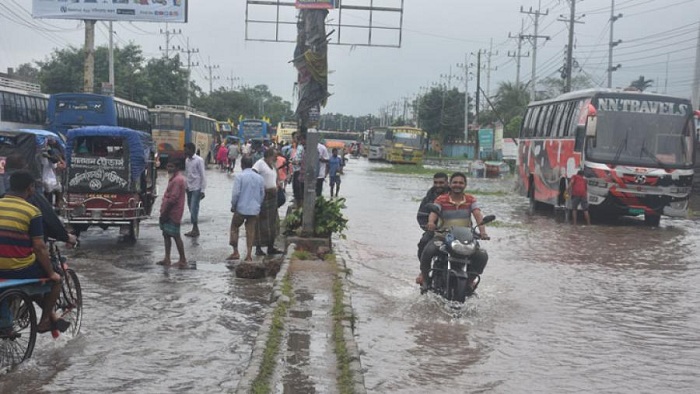 টানা দশ ঘণ্টার বৃষ্টিতে রংপুর মহানগরীসহ জেলার অধিকাংশ এলাকা পানিতে তলিয়ে গেছে। নগরীর প্রধান সড়ক থেকে শুরু করে পাড়া-মহল্লার অলিগলি পানিতে একাকার। বাদ যায়নি বাড়িঘরও। কোথাও কোমর পানি, আবার কোথাও হাঁটু পানি। নগরীর প্রায় ৫০ হাজার মানুষ এখন পানিবন্দি।