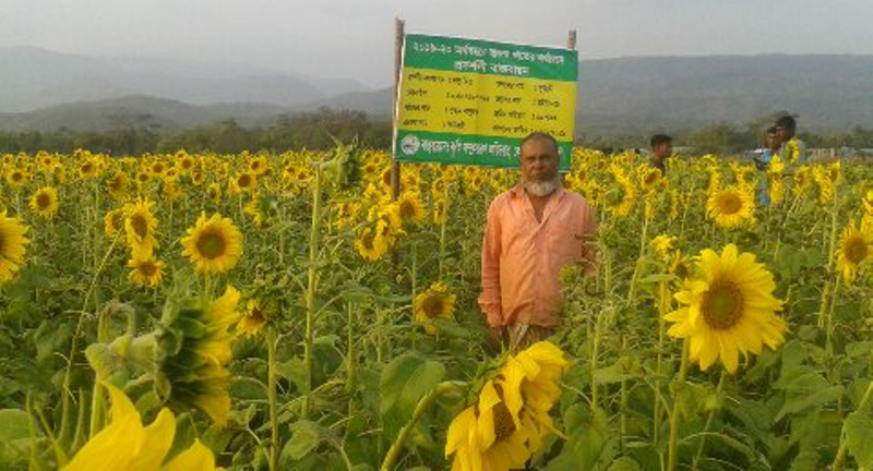 উপজেলা কৃষি অফিসারের পরামর্শে তিনি প্রথমবারের মতো তার জমিতে হাইসান-৩৩ জাতের সূর্যমুখী ফুলের চাষ করেছেন।