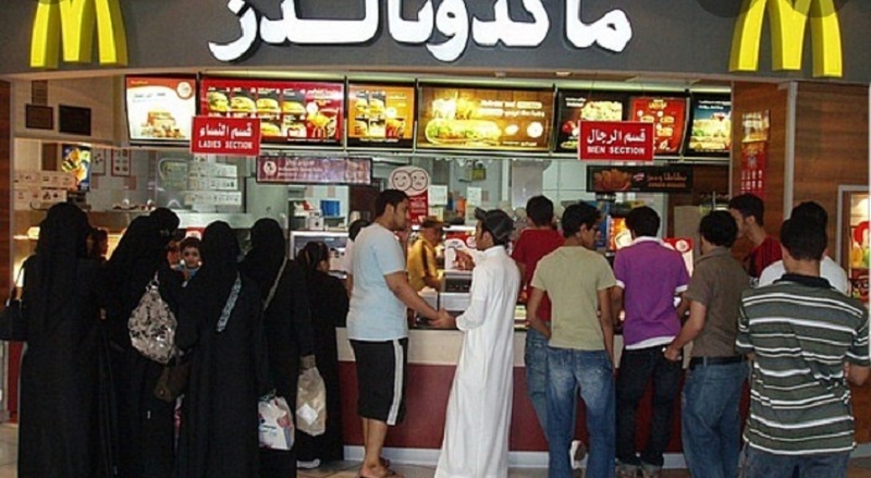 এতদিন পর্যন্ত সৌদির রেস্টুরেন্টগুলোতে নারী ও পরিবারগুলোর জন্য পৃথক বসার ব্যবস্থা ছিল। সেই অংশটি আবার পুরুষদের অংশ থেকে পর্দা দিয়ে পৃথক করা ছিল।