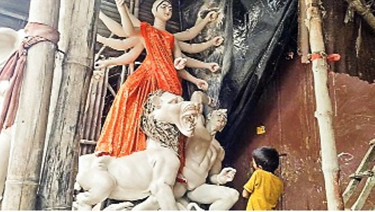 পূজার আরেক উদ্যোক্তা শেখ বাবু বলেন, ‘ঠাকুর নিয়ে আসতে যাই আমরা, প্যান্ডেলে ঠাকুর তোলা, দেখভাল-সবই মুসলমানরা করি হিন্দু ভাইদের সঙ্গে। কিন্তু প্রতিমার কাছে যারা পূজায় বসেন তারা হিন্দু, কারণ সেই কাজে তো মন্ত্র লাগে! আমি তো আর মন্ত্র জানি না!’