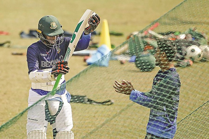 মুশফিকুর রহিম নেটে ব্যাট করে বেরিয়ে যেতেই তাকে জড়িয়ে ধরে সাকিব আল হাসান বললেন, ‘মুশফিক সেঞ্চুরি করে বের হয়েছে, সবাই তালি দাও।’ এরপরই সাকিবের ব্যাট করার পালা। এতক্ষণ মুশফিককে গুণে গুণে বল করে যাওয়া মেহেদী হাসান মিরাজ সাকিবের কাছে জানতে চাইলেন, ‘ভাই, আপনাকে বল করব?’ সাকিবের জবাব কিছুটা তীক্ষ ধাঁচের, ‘আজ তো প্রস্তুতির দিন। তুমি যদি মনে করো তোমার প্রস্তুতি শেষ, তো শেষ।’